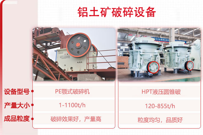 設(shè)備選型:PE系列深腔顎破(如PE600×900、PE750×1060),處理大塊鋁礦石(≤1000mm),抗沖擊性強(qiáng)。