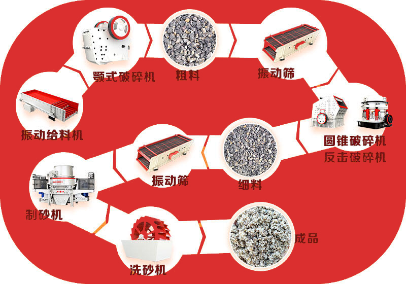 玄武巖的加工一般分為粗碎、中細碎和制砂整形三個階段