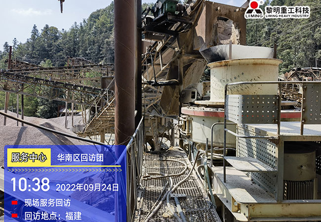 生產(chǎn)線簡(jiǎn)介:該項(xiàng)目為福建三明重點(diǎn)客戶,一期項(xiàng)目2017年建成,主要包含GZD1100*4200+PE750X1060+VSI5X1145+3YZS1860*2+3YZS2160+XSD3616,2020年追加HST250一臺(tái),主要成品為0-5mm機(jī)制砂,10-20mm,20-31.5mm骨料,二期項(xiàng)目為C6X125+HST250+HPT300等(尚未投產(chǎn)),本次回訪主要針對(duì)客戶現(xiàn)場(chǎng)一期項(xiàng)目進(jìn)行對(duì)接。